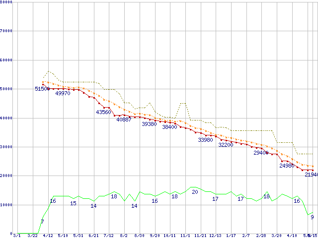 | HDS721010KLA330 (1TB,32MB)の価格推移 | | | (2007年3月1日~2008年5月15日) |