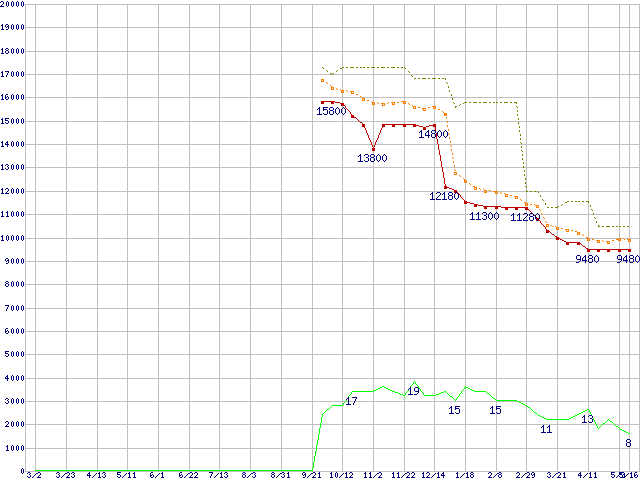 | Athlon 64 X2 5000+ Black Edition (2.6GHz,L2 512KB×2)の価格推移 | | | (2007年3月2日~2008年5月16日) |