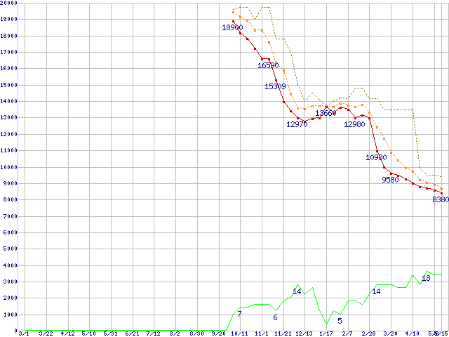 | ST3500320AS (500GB,32MB)の価格推移 | | | (2007年3月1日~2008年5月15日) |