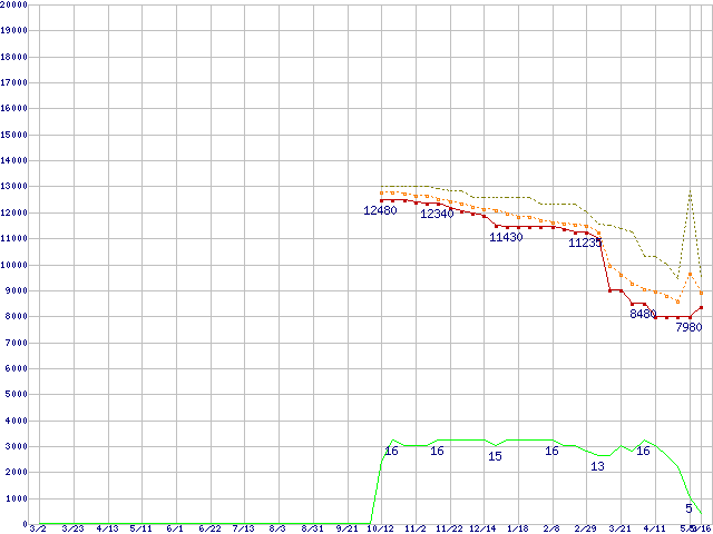 | Athlon X2 BE-2400 (2.3GHz,L2 512KB×2)の価格推移 | | | (2007年3月2日~2008年5月16日) |