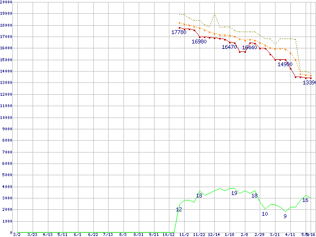 | Core 2 Duo E4600 (2.40GHz,L2 2MB)の価格推移 | | | (2007年3月2日~2008年5月16日) |