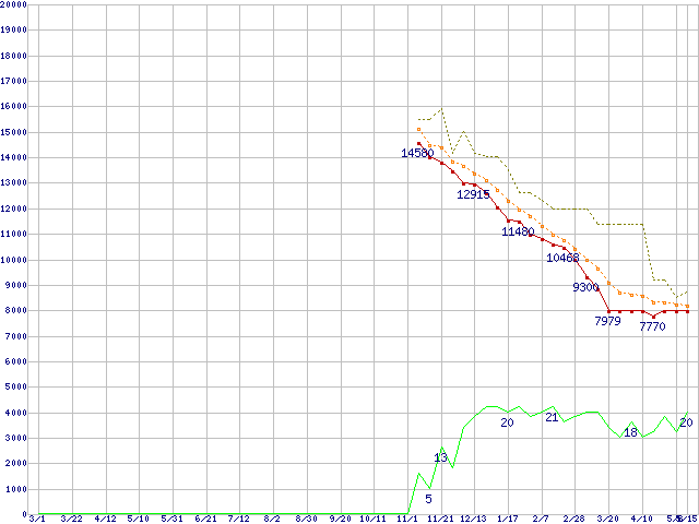| HDP725050GLA360 (500GB,16MB)の価格推移 | | | (2007年3月1日~2008年5月15日) |