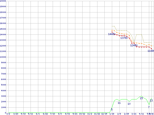 | Athlon X2 5400 (2.8GHz,L2 512KB×2)の価格推移 | | | (2007年3月2日~2008年5月16日) |