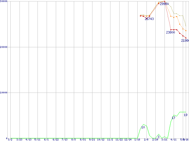 | Core 2 Duo E8400 (3GHz,L2 6MB)の価格推移 | | | (2007年3月2日~2008年5月16日) |