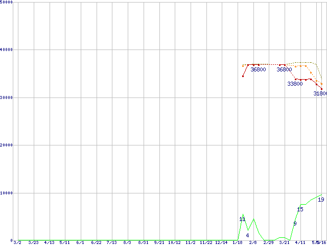 | Core 2 Duo E8500 (3.16GHz,L2 6MB)の価格推移 | | | (2007年3月2日~2008年5月16日) |