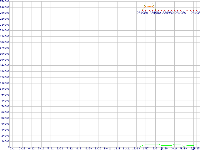 ※このグラフは過去のデータも税率5%相当に調整した税込み相当額のグラフです。 税率変更や、総額表示方式導入(2004年4月)の影響は除いています。 | | | ●凡例 | 最安値 (点線部は販売店未確認 または未調査) | 平均値 | 最高値 | ショップ数 |