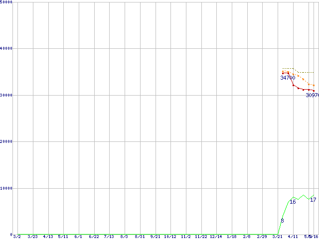 | Core 2 Quad Q9300 (2.5GHz,L2 3MB×2)の価格推移 | | | (2007年3月2日~2008年5月16日) |