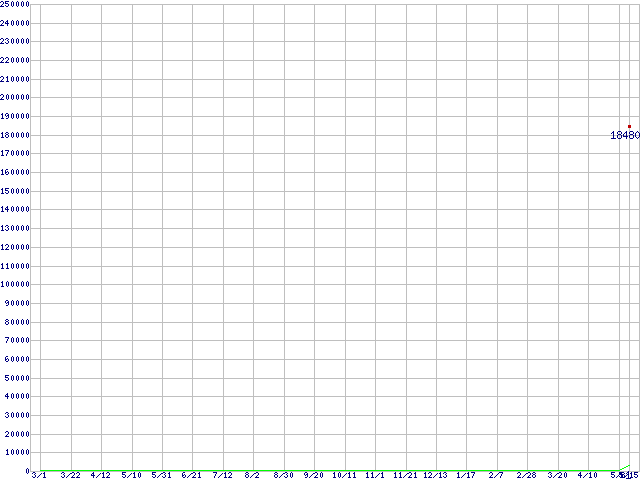 ※このグラフは過去のデータも税率5%相当に調整した税込み相当額のグラフです。 税率変更や、総額表示方式導入(2004年4月)の影響は除いています。 | | | ●凡例 | 最安値 (点線部は販売店未確認 または未調査) | 平均値 | 最高値 | ショップ数 |