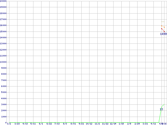 | Phenom X3 8450 (2.1GHz,L2 512KB×3,L3 2MB)の価格推移 | | | (2007年3月2日~2008年5月16日) |
