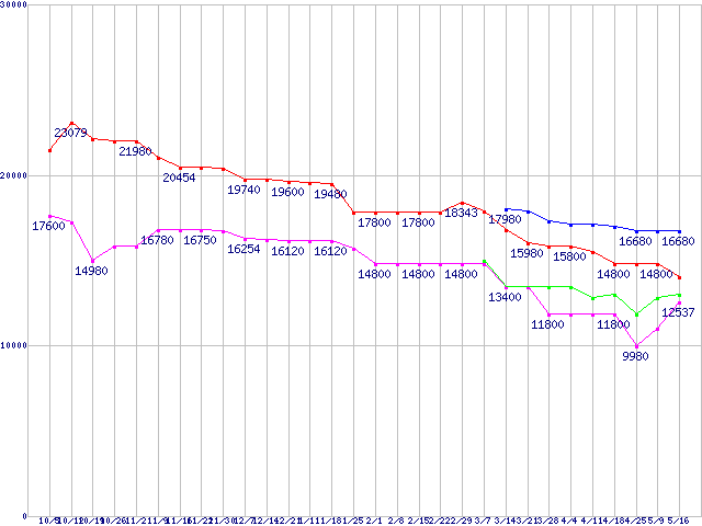 Socket AM2 (HyperTransport,Dual Core)の最安値推移