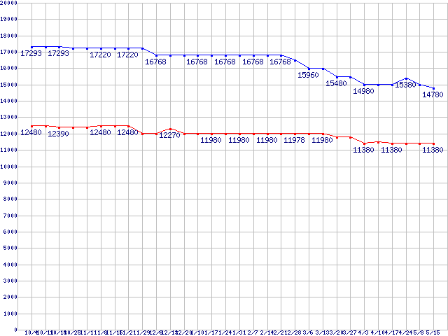 WD Raptor (10000rpm,SATA 1.5Gb/s,16MB,NCQ)の最安値推移