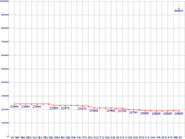 HDD 100~160GB未満の最安値推移