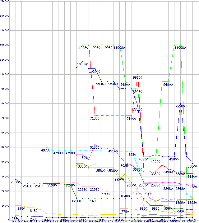 メモリ主要製品の最安値推移