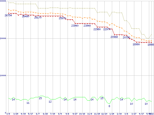| WD1500ADFD (150.0GB)の価格推移 | | | (2007年3月8日~2008年5月22日) |