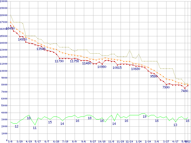 | WD5000AAKS (500GB)の価格推移 | | | (2007年3月8日~2008年5月22日) |