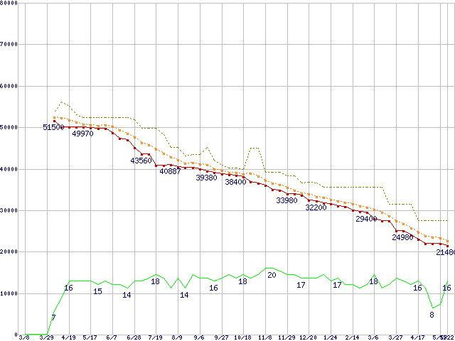 | HDS721010KLA330 (1TB,32MB)の価格推移 | | | (2007年3月8日~2008年5月22日) |