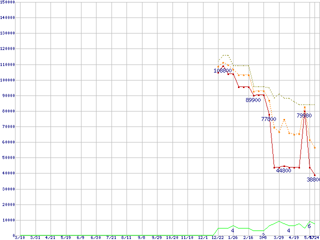 PC3-12800(DDR3-1600) DDR3 SDRAM DIMMの最安値推移