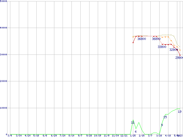 | Core 2 Duo E8500 (3.16GHz,L2 6MB)の価格推移 | | | (2007年3月9日~2008年5月23日) |