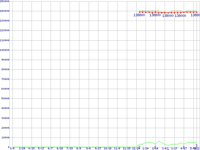 ※このグラフは過去のデータも税率5%相当に調整した税込み相当額のグラフです。 税率変更や、総額表示方式導入(2004年4月)の影響は除いています。 | | | ●凡例 | 最安値 (点線部は販売店未確認 または未調査) | 平均値 | 最高値 | ショップ数 |