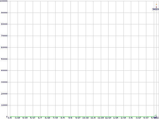 ※このグラフは過去のデータも税率5%相当に調整した税込み相当額のグラフです。 税率変更や、総額表示方式導入(2004年4月)の影響は除いています。 | | | ●凡例 | 最安値 (点線部は販売店未確認 または未調査) | 平均値 | 最高値 | ショップ数 |