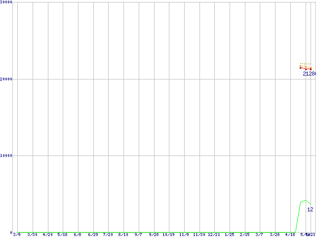 | Phenom X4 9550 (2.2GHz,L2 512KB×4,L3 2MB)の価格推移 | | | (2007年3月9日~2008年5月23日) |