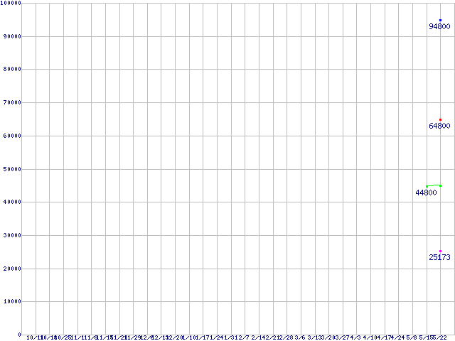 | MasterDrive MX SATA-II 25 (SSD,SATA,2.5インチ,MLC)の最安値推移 | | | (2007年10月11日~2008年5月22日) |