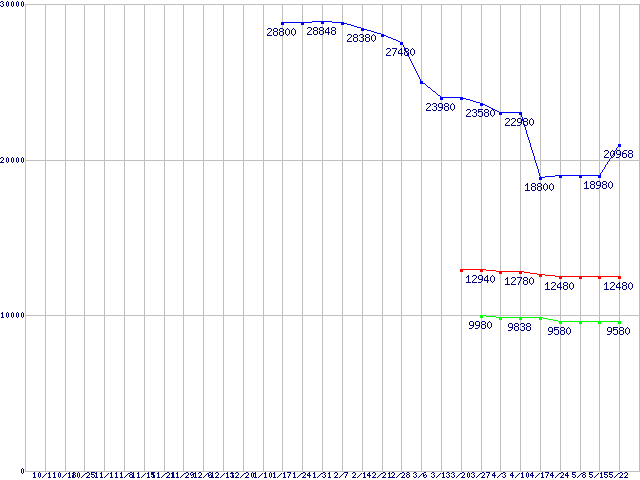 Spinpoint F1 (7200rpm,SATA 3Gb/s)の最安値推移