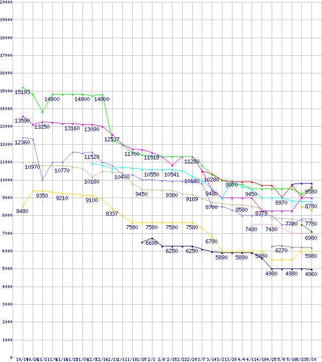 CPU主要製品(最安値1万円~2万円未満)の最安値推移