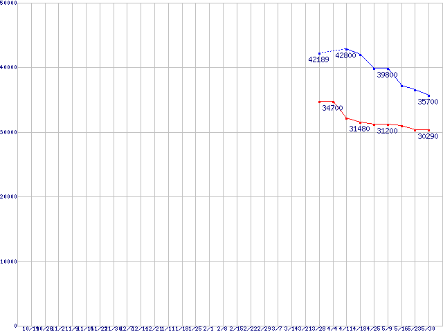 CPU主要製品(最安値3万円~6万円未満)の最安値推移