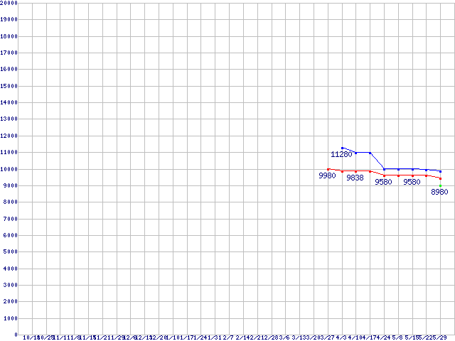 HDD 750GB~1TB未満の最安値推移