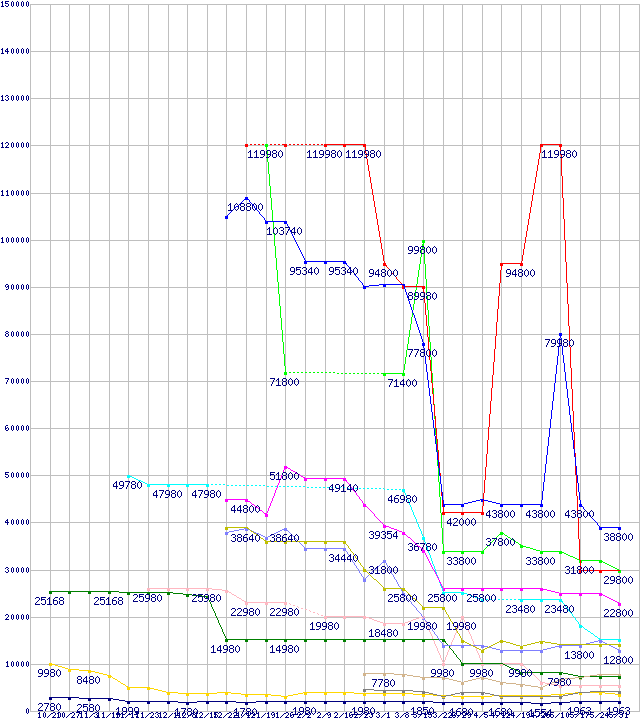 メモリ主要製品の最安値推移