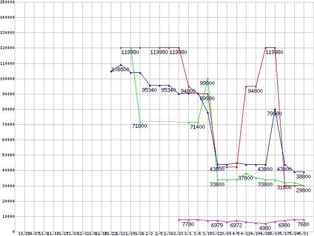 メモリ主要製品の最安値推移