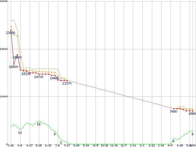 | Athlon X2 4600 (2.4GHz,L2 512KB×2)の価格推移 | | | (2007年3月16日~2008年5月30日) |