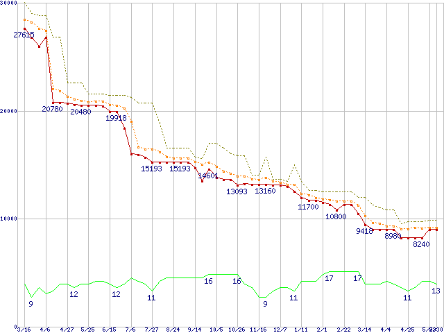 | Athlon 64 X2 5000+ (2.6GHz,L2 512KB×2)の価格推移 | | | (2007年3月16日~2008年5月30日) |