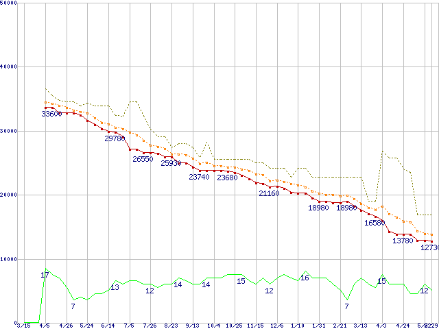 HDS721075KLA330 (750GB,32MB)の価格推移 | | (2007年3月15日~2008年5月29日) |