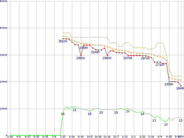 | Core 2 Duo E6850 (3GHz,L2 4MB)の価格推移 | | | (2007年3月16日~2008年5月30日) |