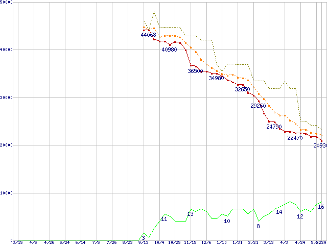 | ST31000340AS (1TB,32MB)の価格推移 | | | (2007年3月15日~2008年5月29日) |