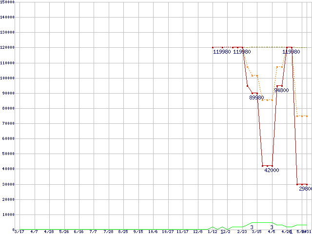 | PC3-8500 2GB×2枚組みセットの価格推移 | | | (2007年3月17日~2008年5月31日) |