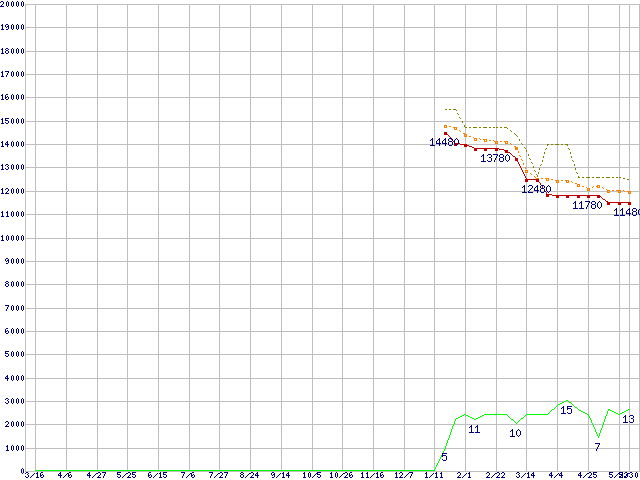 | Athlon X2 5400 (2.8GHz,L2 512KB×2)の価格推移 | | | (2007年3月16日~2008年5月30日) |