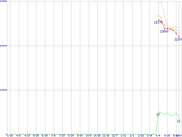 | Phenom X4 9750 (2.4GHz,L2 512KB×4,L3 2MB)の価格推移 | | | (2007年3月16日~2008年5月30日) |