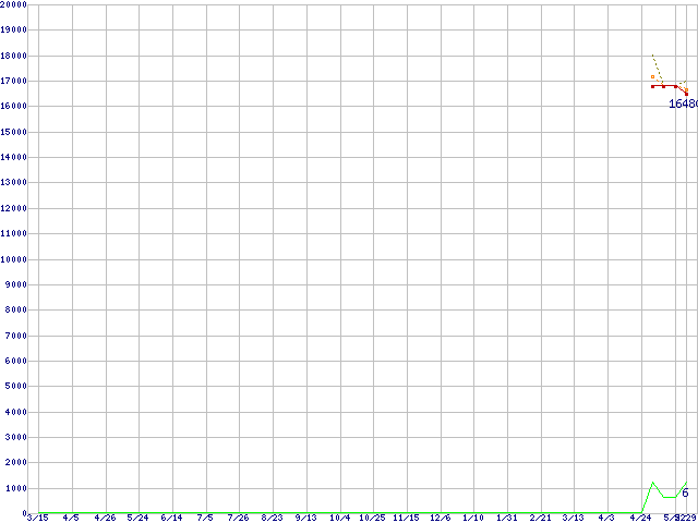 ※このグラフは過去のデータも税率5%相当に調整した税込み相当額のグラフです。 税率変更や、総額表示方式導入(2004年4月)の影響は除いています。 | | | ●凡例 | 最安値 (点線部は販売店未確認 または未調査) | 平均値 | 最高値 | ショップ数 |