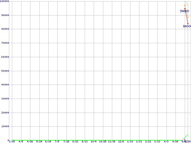※このグラフは過去のデータも税率5%相当に調整した税込み相当額のグラフです。 税率変更や、総額表示方式導入(2004年4月)の影響は除いています。 | | | ●凡例 | 最安値 (点線部は販売店未確認 または未調査) | 平均値 | 最高値 | ショップ数 |