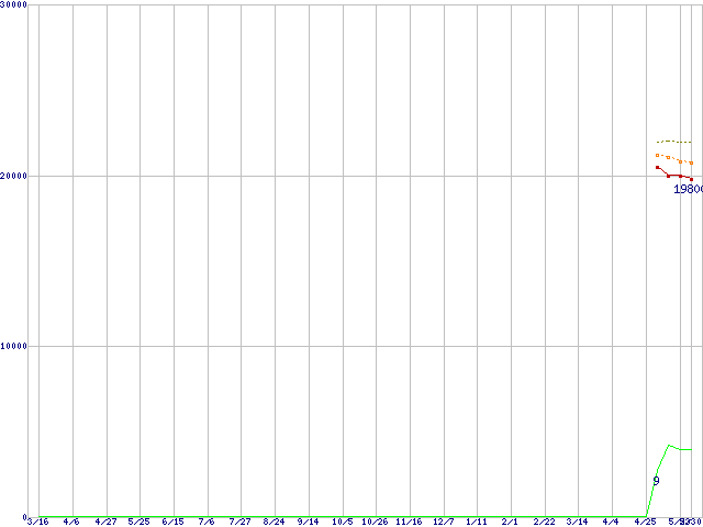 | Phenom X3 8750 (2.4GHz,L2 512KB×3,L3 2MB)の価格推移 | | | (2007年3月16日~2008年5月30日) |
