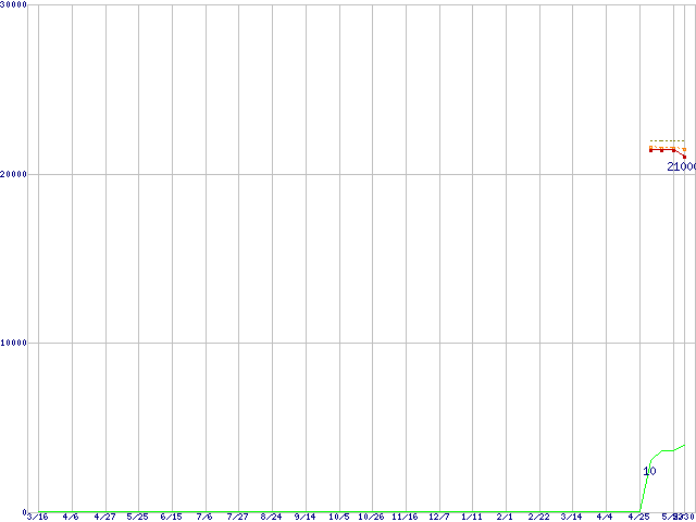 | Phenom X4 9100e (1.8GHz,L2 512KB×4,L3 2MB)の価格推移 | | | (2007年3月16日~2008年5月30日) |