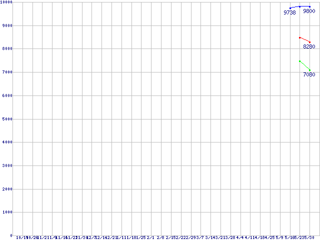 | Socket AM2 (HyperTransport,Dual Core,TDP 45W)の最安値推移 | | | (2007年10月19日~2008年5月30日) |