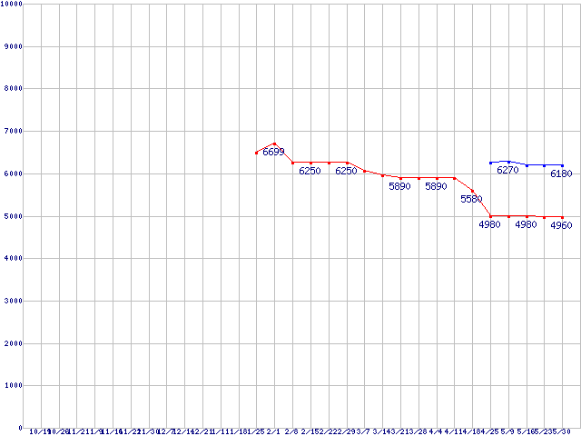 Socket AM2 (HyperTransport,Dual Core,TDP 65W)の最安値推移