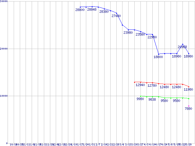 Spinpoint F1 (7200rpm,SATA 3Gb/s)の最安値推移