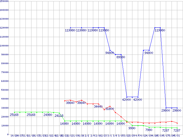 PC3-12800(DDR3-1600) DDR3 SDRAM DIMMの最安値推移