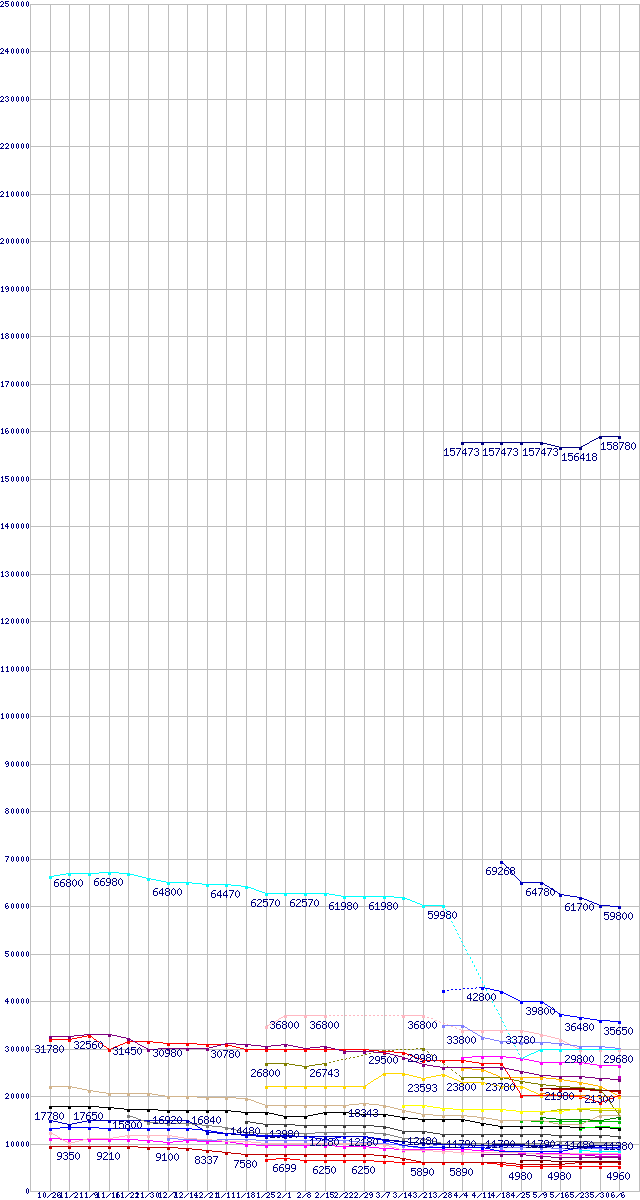 ※製品名をクリックすると個別のグラフを表示します ※点線部は販売店が確認できなかった、または調査データがないことを示します |