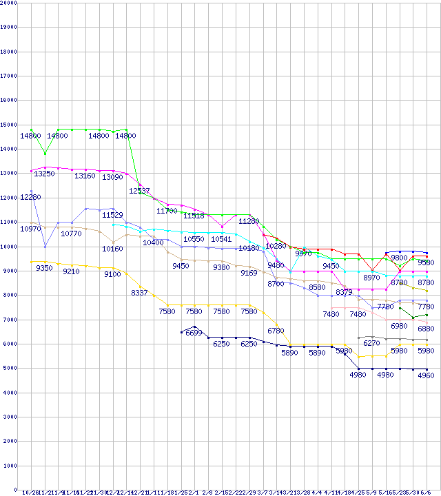 CPU主要製品(最安値1万円~2万円未満)の最安値推移